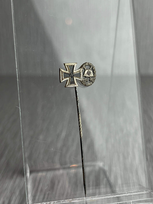 GERMAN WW2 IRON CROSS & SILVER WOUND BADGE STICKPIN BY FORSTER & BARTH (L21)