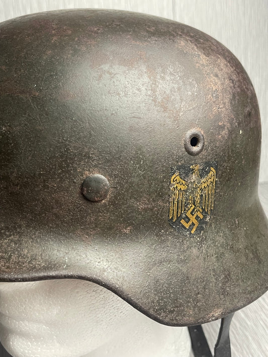 GERMAN WW2 KRIEGSMARINE M40 SD HELMET E.T. 66 W/ PARTIAL CHINSTRAP UNTOUCHED