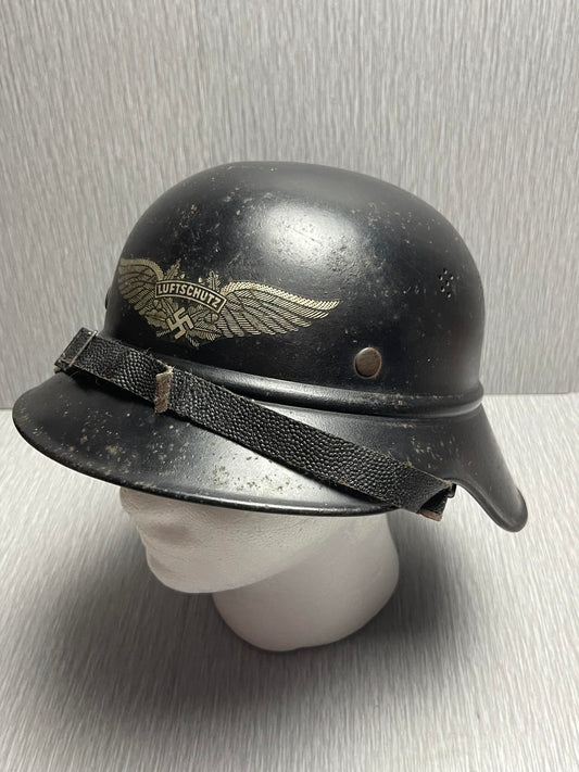 GERMAN WW2 NAMED LUFTSCHUTZ "GLADIATOR" STYLE HELMET W/ CHINSTRAP BY CARL BUSSE