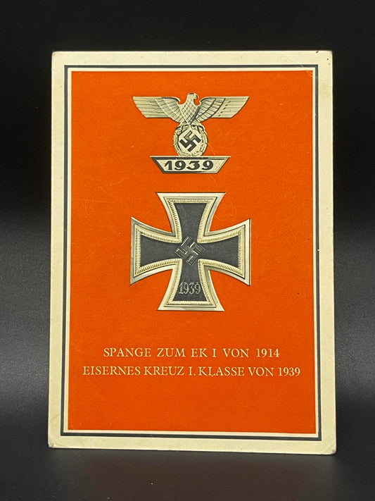 GERMAN WW2 1939 IRON CROSS FIRST CLASS WITH THE CLASP TO THE IRON CROSS POSTCARD