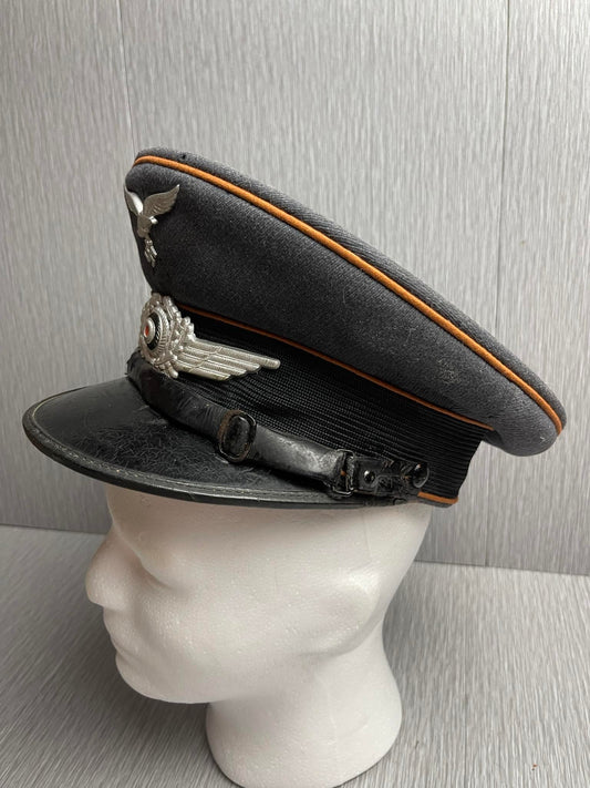 GERMAN WW2 1939 LUFTWAFFE EM SIGNALS VISOR HAT OSTLAND, FREIBURG SCHLESIEN
