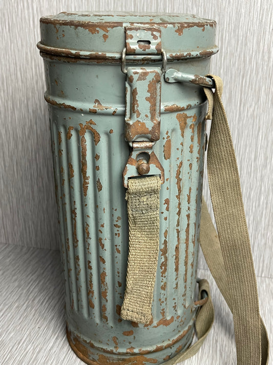 GERMAN WW2 1944 KRIEGSMARINE CAMOUFLAGED GAS MASK CANISTER W/ RIVETED STRAPS