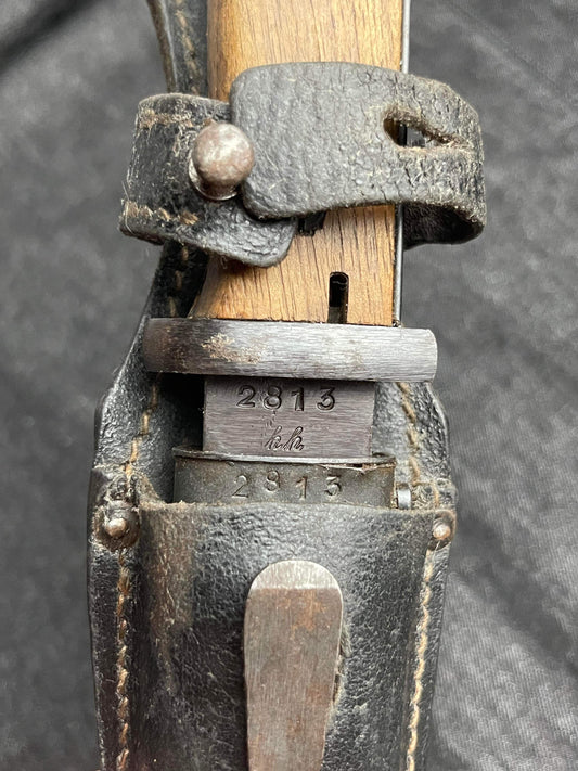 GERMAN WW2 1943 S84/98 III PATTERN COMBAT BAYONET LEATHER FROG RBNR MARKED