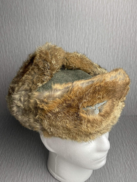 GERMAN WW2 1943 HEER EM/NCO WINTER RABBIT FUR HAT RBNR MARKED
