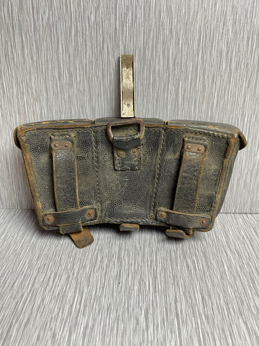 GERMAN WW2 1942 K98 AMMUNITION BELT POUCH MAKER & YEAR MARKED W/ MARKED STRIPPER CLIP DDU.43