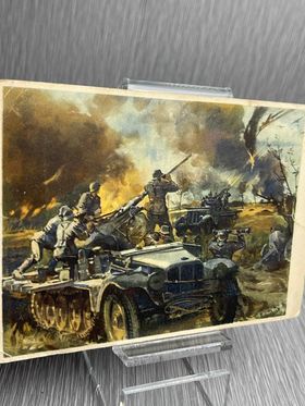 GERMAN WW2 2CM LEICHTE FLAK MOUNTED SD.KFZ. 10/4 HALFTRACK POSTCARD BASED ON ART BY VICTOR MUNDORFF