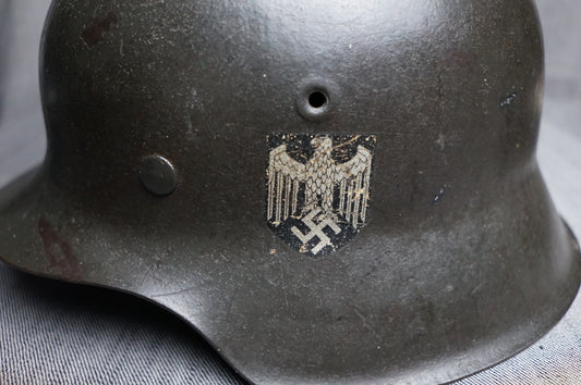 GERMAN WW2 HEER M42 SINGLE DECAL HELMET E.T. 68 W/ CHINSTRAP STUNNER!