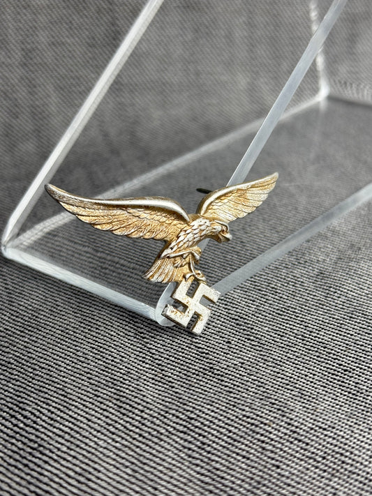 GERMAN WW2 LUFTWAFFE FIRST PATTERN GILDED VISOR EAGLE “DROP TAIL” VARIANT RARE!