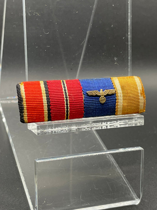 GERMAN WW2 4 PLACE RIBBON BAR WITH EKII 1939, OST FROMT MEDAILLE, HEER 4 YEAR SERVICE, WEST WALL “ATLANTIC WALL” AWARDS