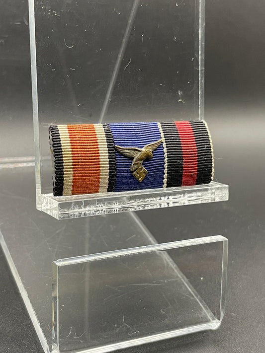 GERMAN WW2 3 PLACE RIBBON BAR EKII 1813-1939, LUFTWAFFE FOUR YEAR LONG SERVICE, CZECHOSLOVAKIA ANNEXATION (SUDETENLAND)