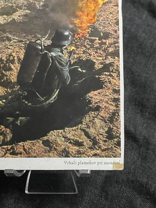 GERMAN WW2 FLAMETHROWER SOLDIER POSTCARD CZECHOSLOVAKIAN VERSION