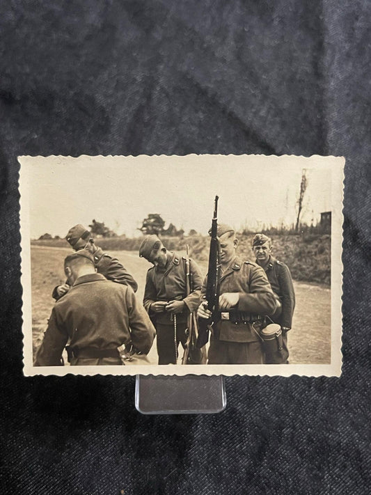 GERMAN WW2 WEHRMACHT SOLDIERS "PREPARING FOR BATTLE" PHOTO