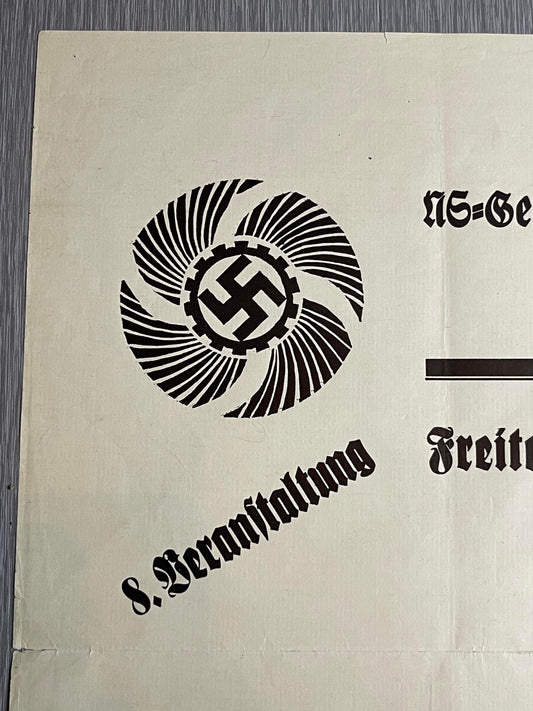 GERMAN WW2 1941 KDF NS COMMUNITY 'NATIONAL EDUCATION CENTER' POSTER ADVERTISING LECTURE & COMEDY SHOW AT CASINO HOTEL TRAPP