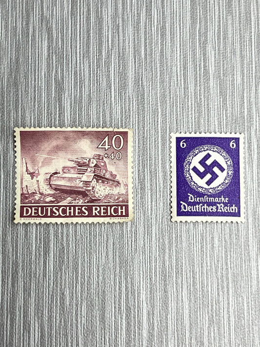 GERMAN WW2 1943 DEUTSCHES REICH 40PF PAZER IV & NATIONAL SYMBOL 6PF STAMP LOT